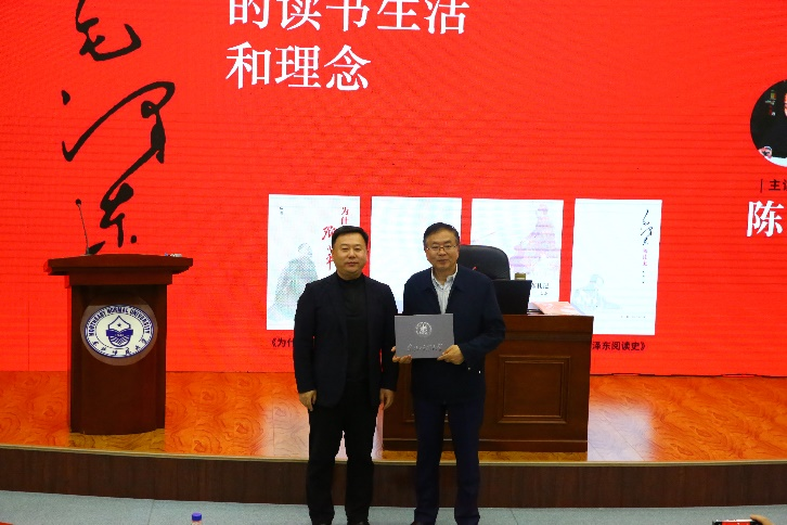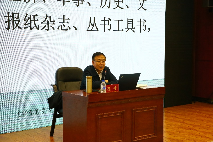 原中央文獻研究室副主任、中央黨史和文獻研究院院務委員(副部長級),中央馬克思主義理論研究和建設工程咨詢委員會委員,中國毛澤東詩詞研究會會長陳晉為廣大師生作了“毛澤東的讀書生活和理念”專場報告會。陳晉詳細介紹了毛澤東同志的讀書狀態、讀書方法和閱讀歷程,鼓勵大家繼承和弘揚毛澤東同志結合實際的讀書精神,通過讀書延長生命的厚度、寬度、深度。