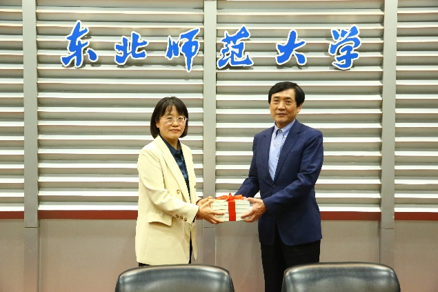 東北師范大學黨委副書記兼副校長常青,副校長鄔志輝,吉林省作協黨組書記張麗,人民文學出版社總編輯李紅強,吉林人民出版社社長常宏,吉林東北亞出版傳媒集團黨委委員、副總經理孫澤山,時代文藝出版社總編輯郝秋月等出席報告會。文學院、圖書館、校友會的主要負責人以及文學院師生共同參加報告會。報告會由文學院院長王春雨教授主持。報告會之前,黨委副書記兼副校長常青、副校長鄔志輝親切會見了與會的各位領導和作家,并代表學校接受作家贈書。
