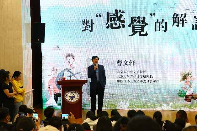 北京大學中文系教授、北京大學文學講習所所長、中國作協兒童文學委員會主任曹文軒以“對‘感覺’的解讀”為主題作了專場報告。他從對感覺的解讀出發,立足感覺與詩文、理性思維意象的感覺于藝術思維意象的感覺,建議創作者要有敏銳的感覺、豐富的感覺、特殊的感覺和微妙的感覺。報告會上,師生們通過現場提問進行了熱烈的交流互動。