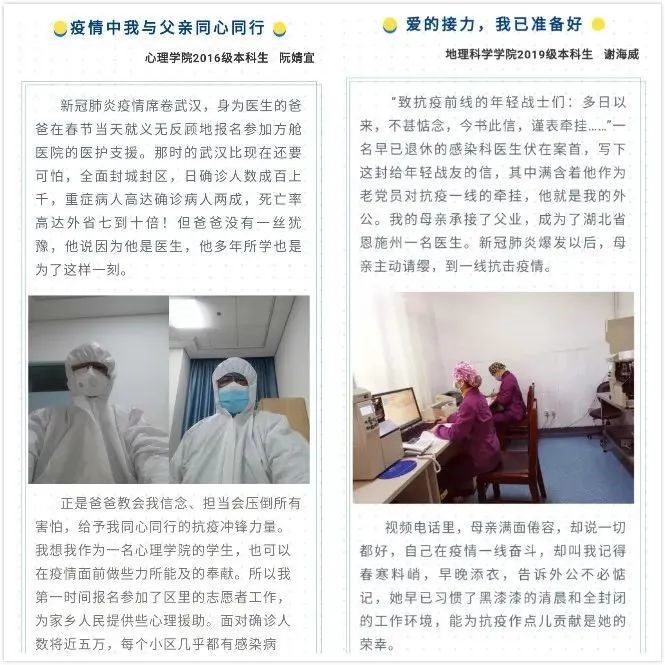 文學院 郭歡:“以服務實現價值。疫情肆虐的背景下,我深知自己作為中共預備黨員應當積極承擔社會責任,力所能及為抗擊疫情做出努力。”
