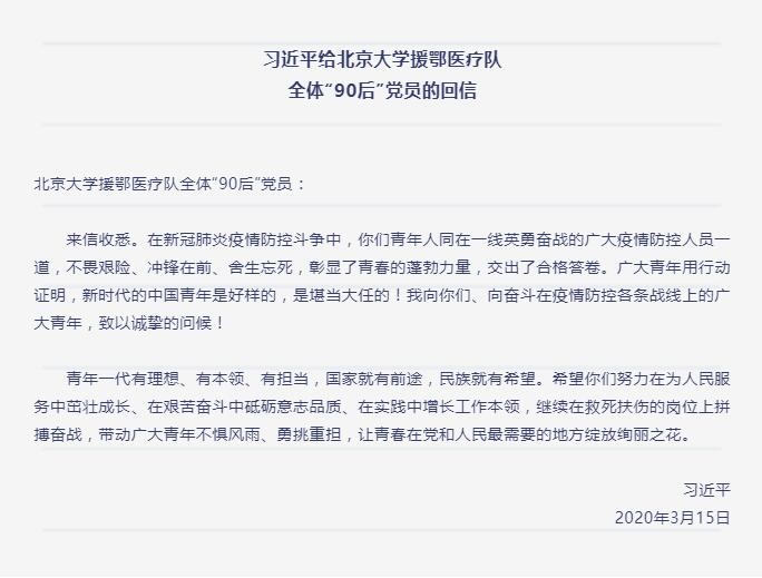 習近平總書記給北京大學援鄂醫療隊