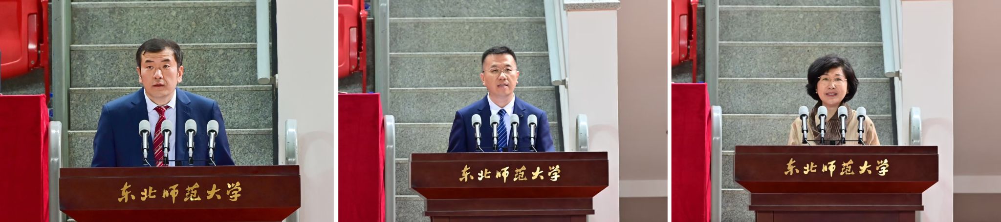 學校黨委書記李忠軍,校長徐海陽,教育部直屬高校黨建工作聯絡員、原吉林大學黨委副書記韓曉峰,黨委副書記兼副校長常青,副校長魏民、薛利鋒、鄔志輝,黨委副書記、紀委書記劉九慶,黨委常委王娜、李紅權、解玲,校長助理白冰、邵志豪出席開學典禮。典禮由常青主持。