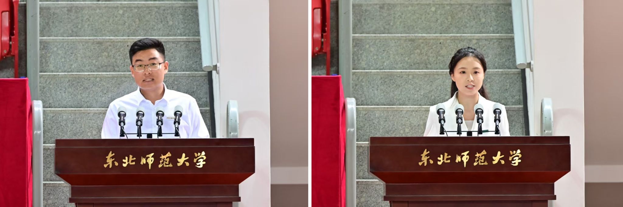 新生代表,政法學院2025級本科生陳熙分享了與東師結緣的經歷和從東師先賢事跡中受到的教育和感染。他與大家共勉,作為新一代東師人,要成為東師精神的傳承者、全面成長的追夢者、引領未來的探索者;作為新時代青年,要樹立科學的歷史觀、自信的文化觀、正確的發展觀、不屈的奮斗觀、團結的國家觀。