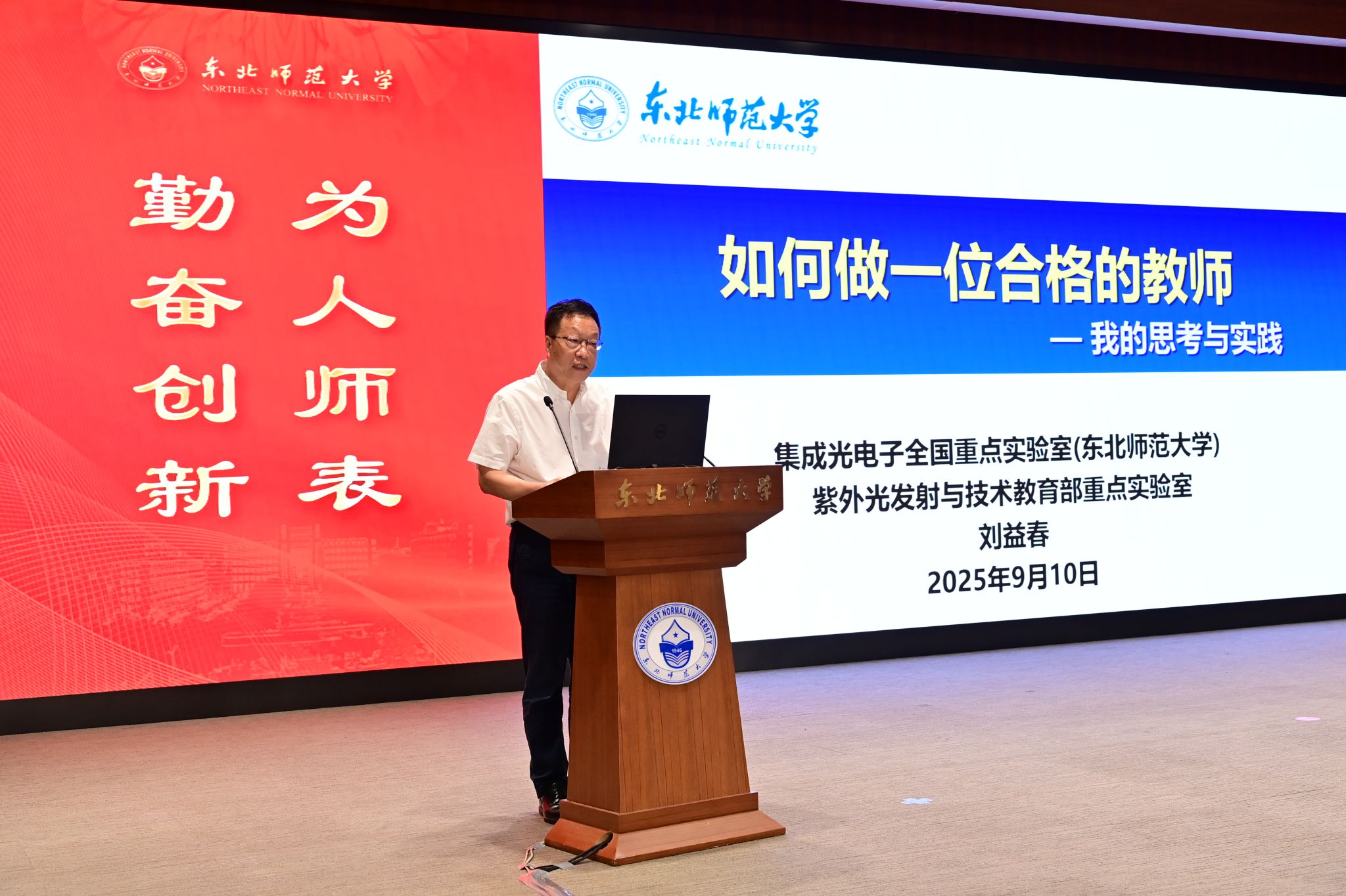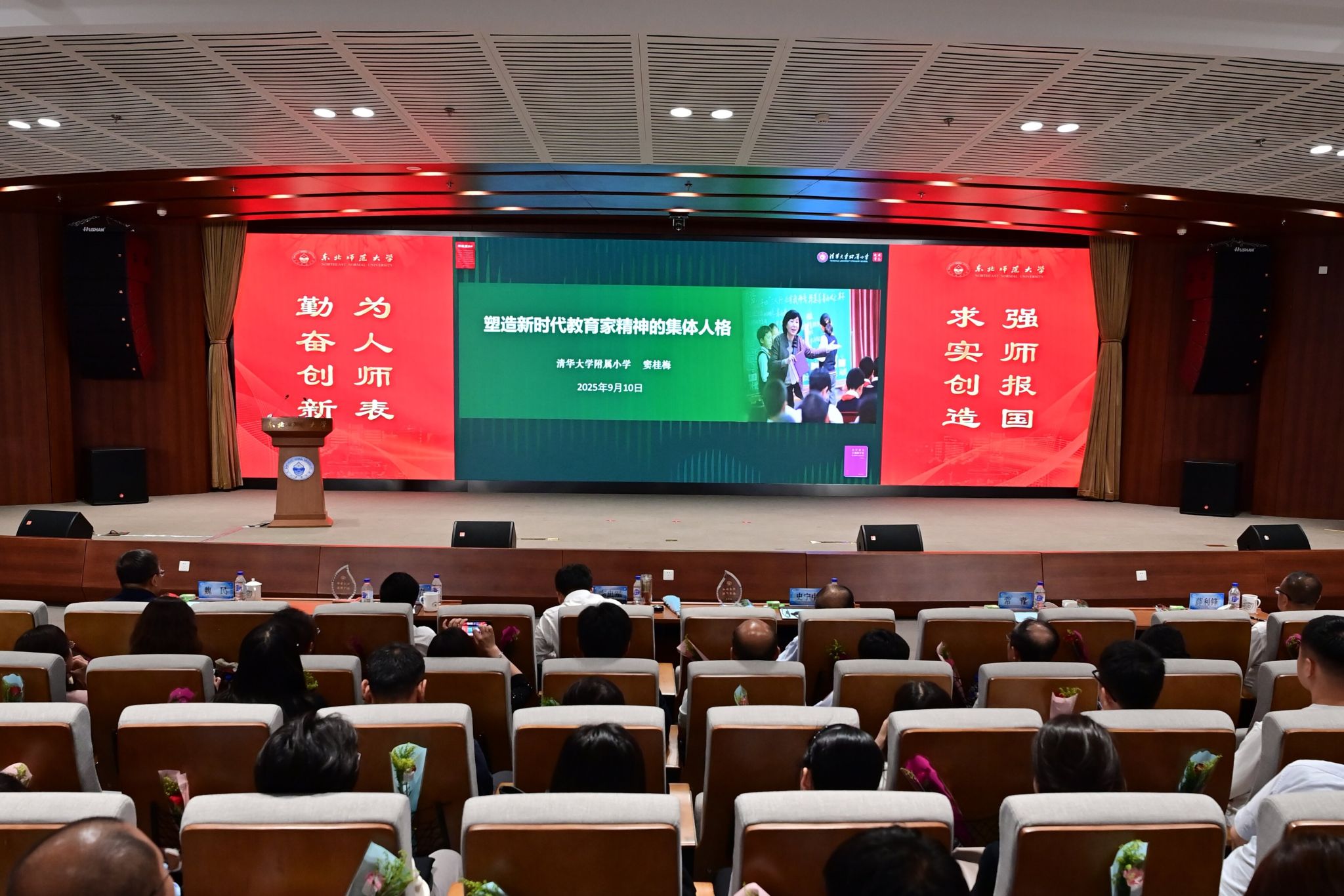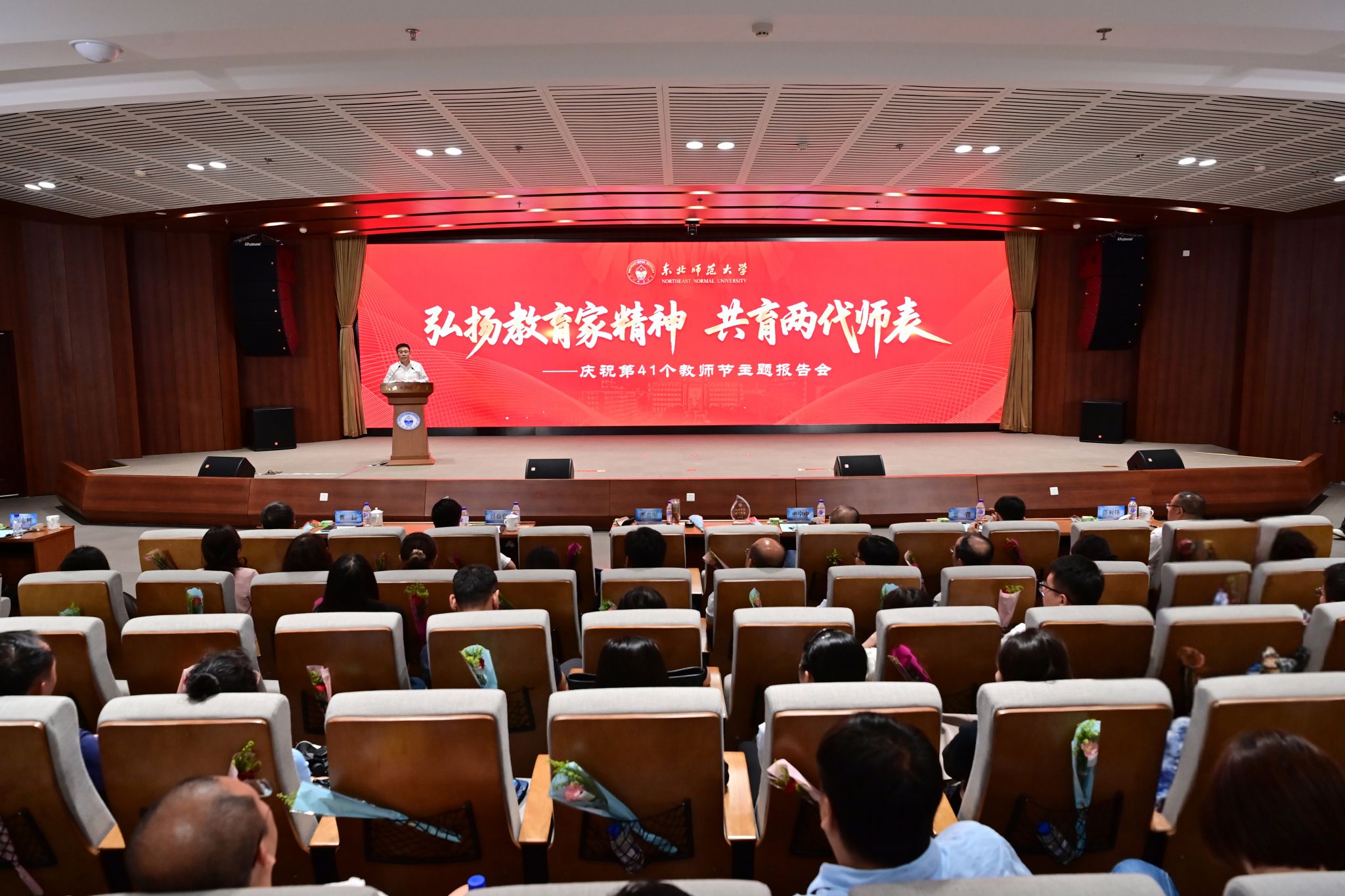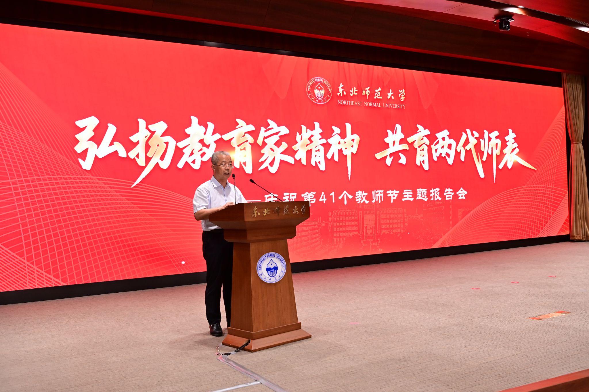 為慶祝第41個教師節,深刻學習領會和貫徹落實習近平總書記給全國特崗教師代表的回信精神,9月10日,學校隆重舉行“弘揚教育家精神 共育兩代師表”主題報告會。報告會邀請學校原校長、2023年度“全國教書育人楷模”史寧中教授,2020年度“全國教書育人楷模”高夯教授,中國科學院院士、原校長、2025年度全國“最美教師”劉益春教授,2020年度“全國教書育人楷模”、優秀校友、清華大學附屬小學校長竇桂梅教授做主題分享。學校黨委書記李忠軍和在校的領導班子成員,以及學校相關職能部門負責人和各學院(部)黨政負責人、學校近5年入職的專任教師、公費師范生代表等近400人參加本次報告會。